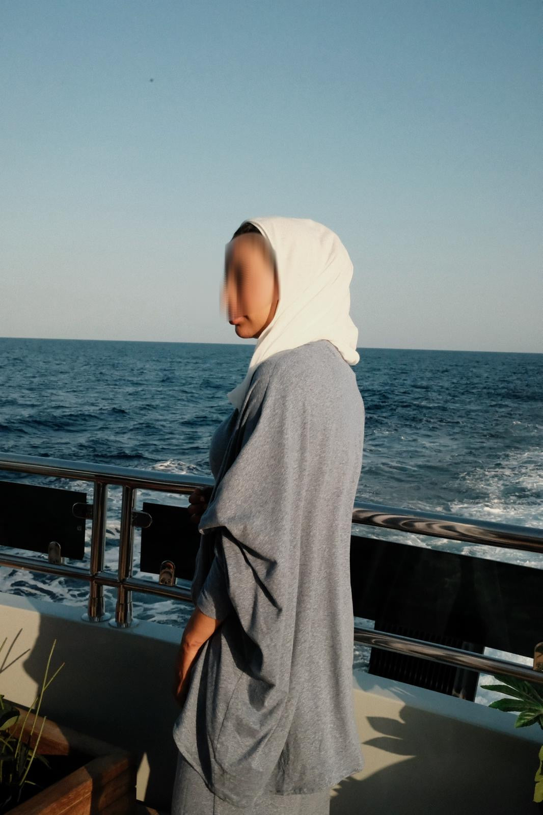 Effortless and refined, this three-piece cotton set by RE-NEW Kuwait features a ruched top, wide-leg trousers, and a flowy open-front overlay. Crafted in soft charcoal cotton for everyday modest elegance. Designed by RE-NEW Kuwait.